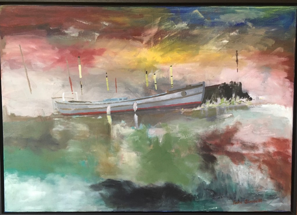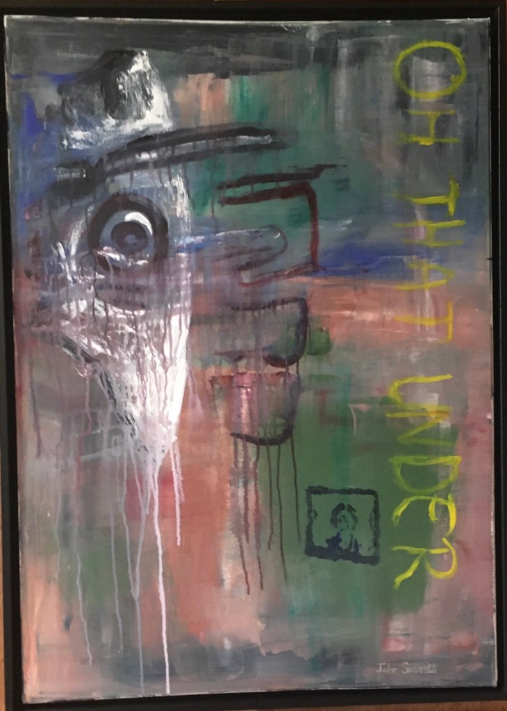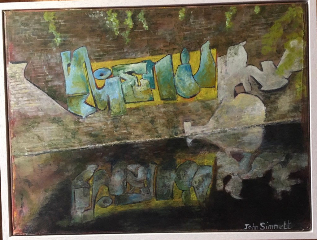 This is one of several pieces of graffiti art and tags beside a river in Berlin, close to where my daughter lives. I wanted to bring it to life in oils and embed it in my memory.